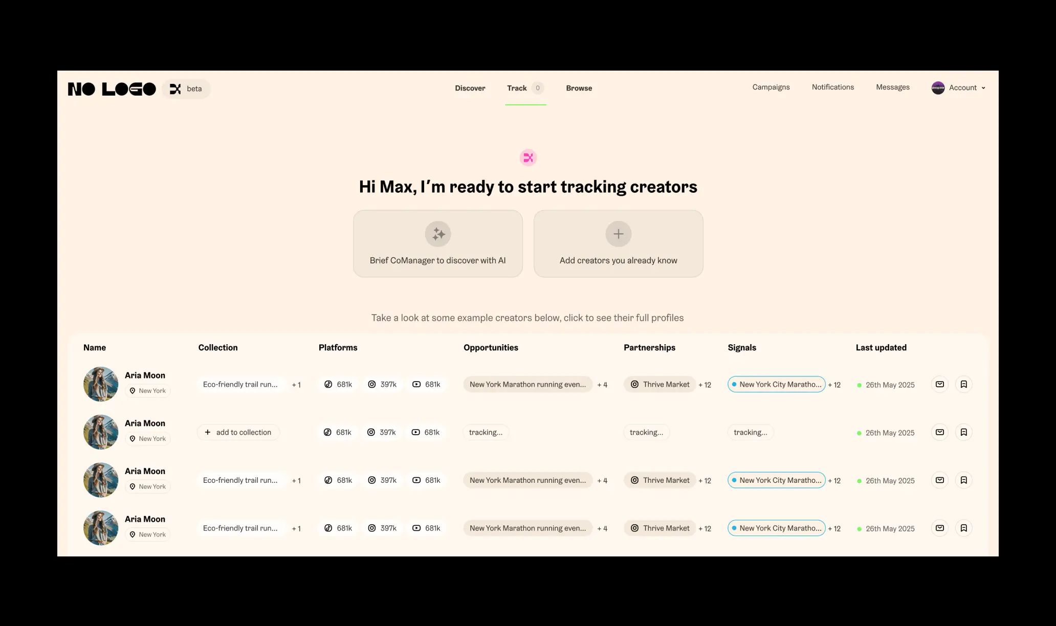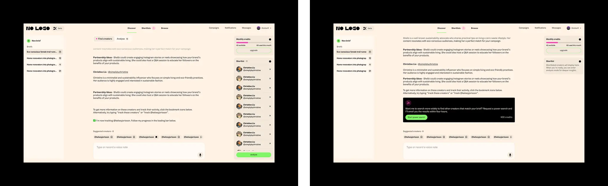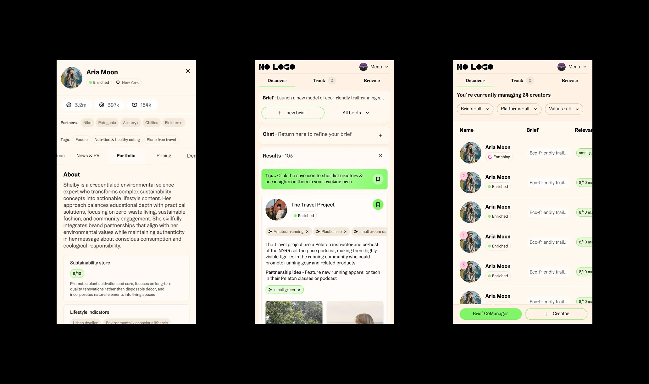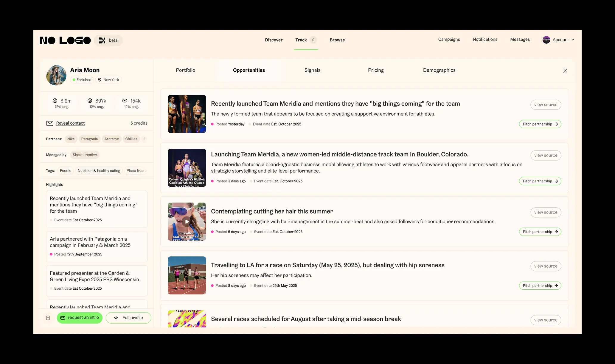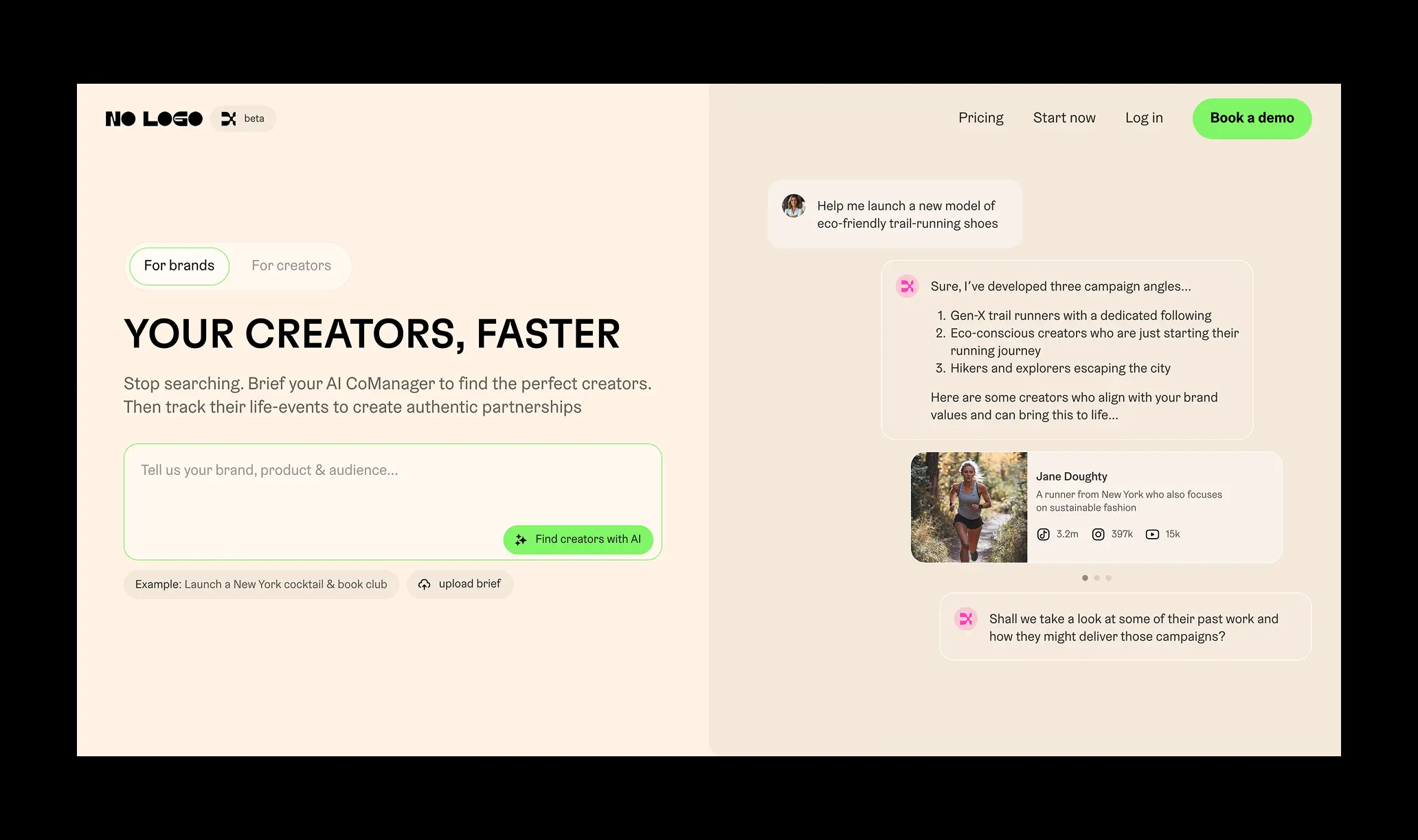 Born from a leading creator agency, No Logo X is an AI enabled platform that provides a new way for brands and creators to work together. Combining their human expertise with automated functionality and AI models, it is part scout, agent, manager and advisor to facilitate a two way marketplace for an ever growing industry.
